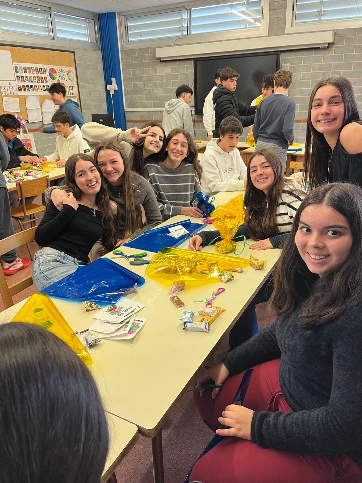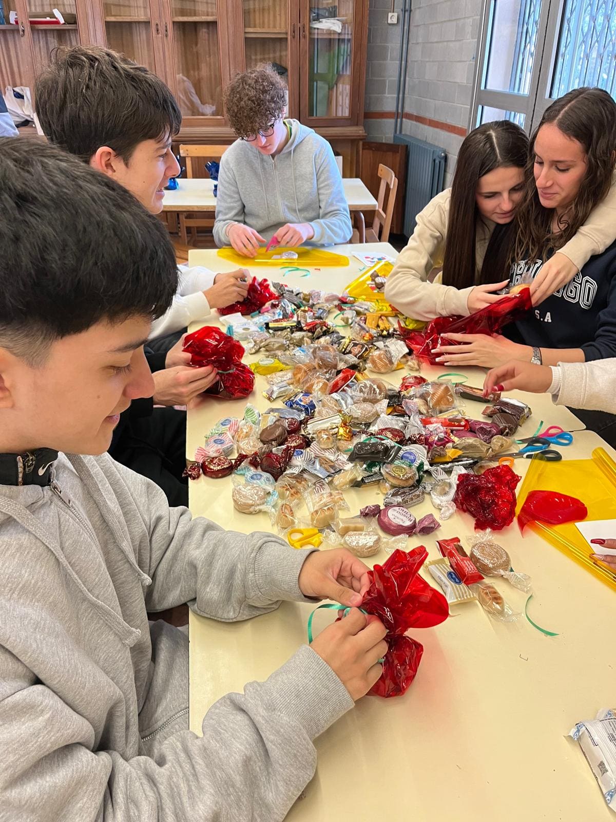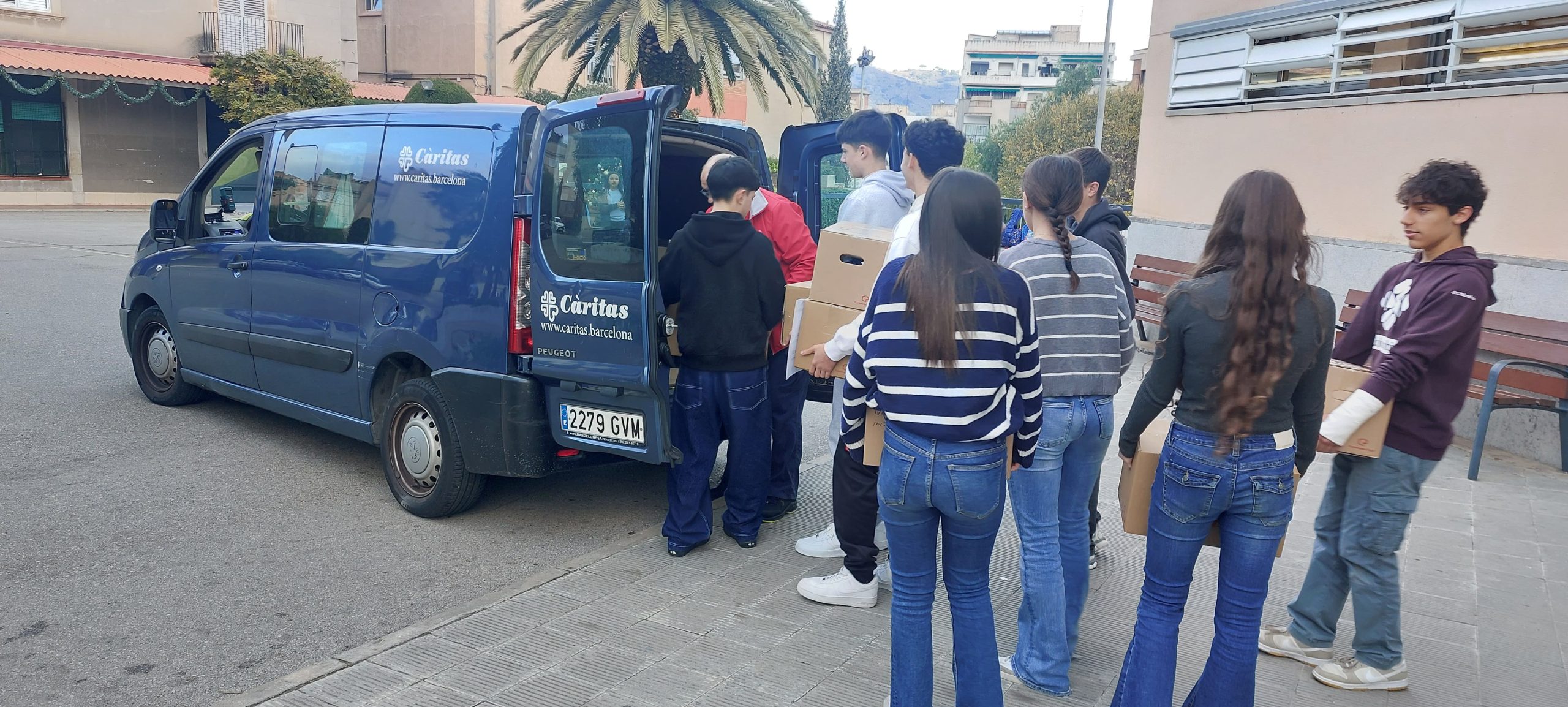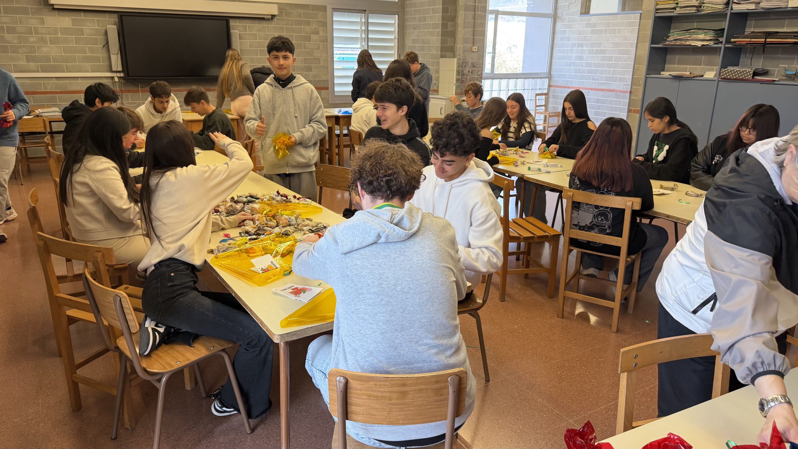 També agrair la feina que fan els/les alumnes del Servei Comunitari i els seus professors/es: sensibilització per totes les aules, recollida de les caixes, fer els lots individuals de dolços, empaquetar els sucs, carregar la furgoneta, …